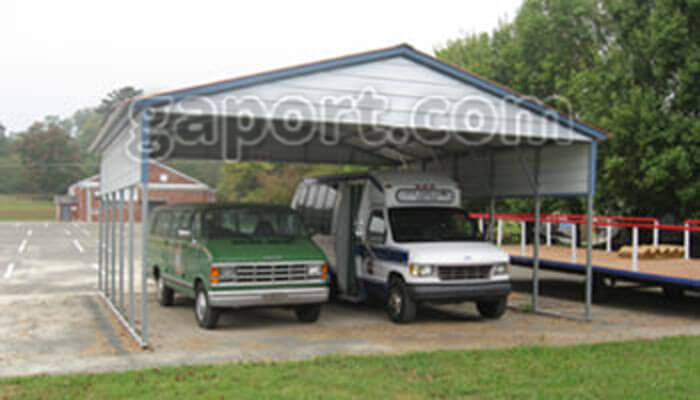 The amount of coverage has a great deal to do with the size of the unit and the equipment to be protected. Say for instance, you are placing a box eave style two car carport in front of your home for parking under on a daily basis. You are going to really want the car port to be functional and pleasing to the eye since it is setting in your front yard. For added protection from UV rays and blowing rain/snow it is going to be best to add two gable ends. It also would be a good idea to add two half panels (one per side) to allow for added protection from the elements. However, if you are covering a boat or RV in the backyard you’re trying to give maximum protection from sunlight and water. So for that added protection, consider enclosing the carport on three sides and if height permits, also put in a gable end. These are just some of aspects for your consideration.